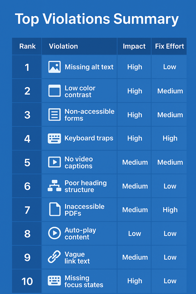 In reality, automated scanners catch only 30–40% of accessibility issues.